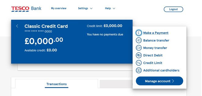 You can also manage your Payments and Transactions for your Tesco Bank Credit Card using our Mobile Banking App.